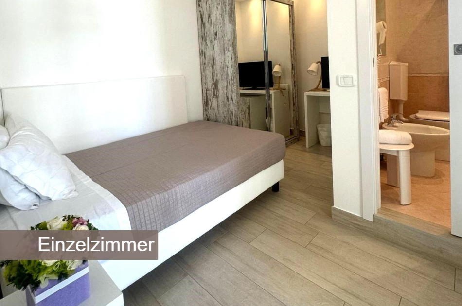 Die komfortablen und einladenden Zimmer mit neuer Einrichtung sind die ideale Lösung für Geschäfts– oder Urlaubsreisen nach Jesolo für all diejenigen, die einen erholsamen Aufenthalt nur ein paar Schritte vom Zentrum des Nachtlebens in Jesolo suchen.