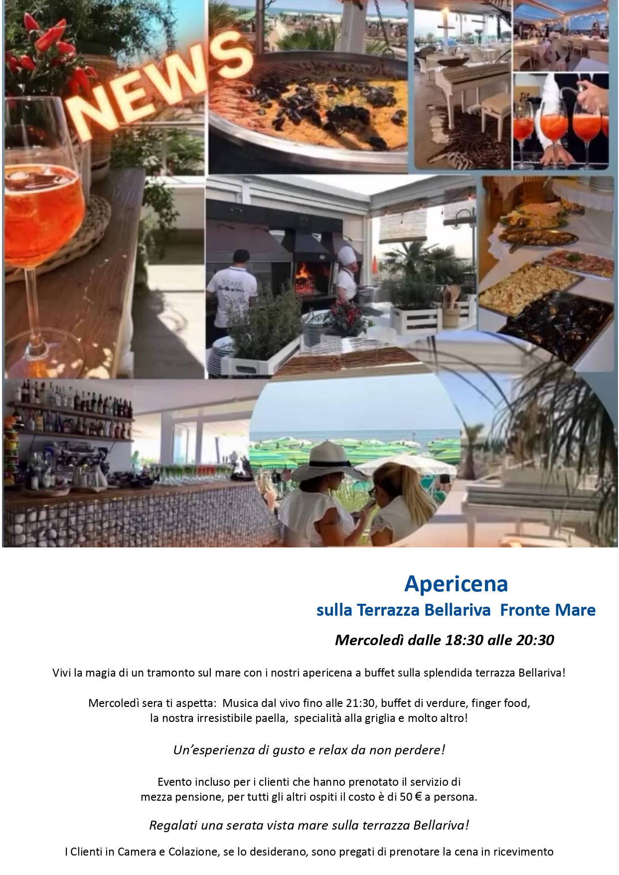 Con un occhio di riguardo ai prodotti della nostra regione a km zero, sempre freschissimi, per offrirvi un’ esperienza di gusto unica nel suo genere, il ristorante dell’Hotel Bellariva a Jesolo vi attende per deliziare i vostri palati durante la vostra splendida vacanza fronte mare.